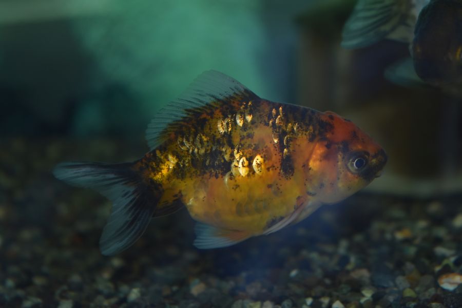 普通のランチュウと違いウロコ一枚一枚が大きく