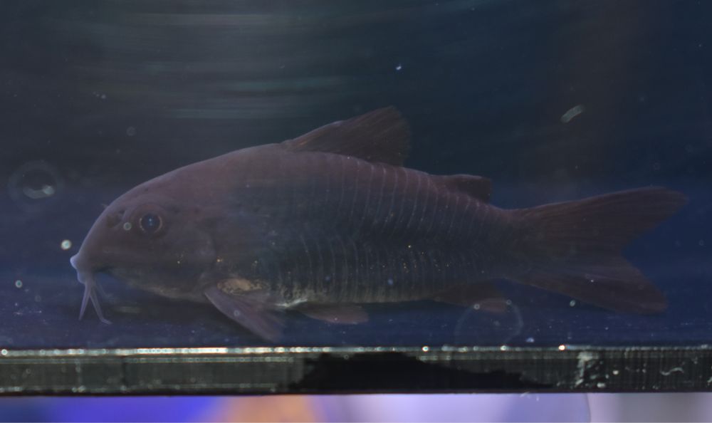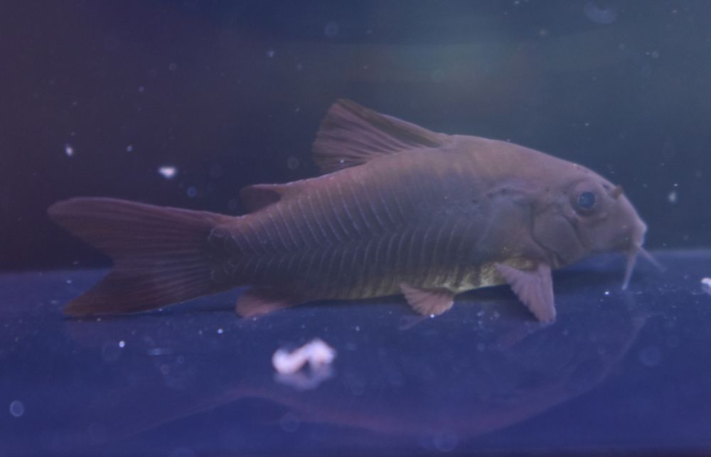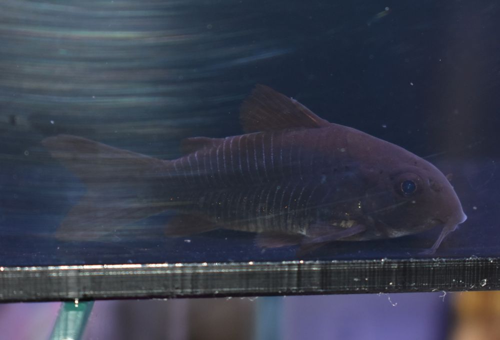 顔と体側が青黒くなる珍しい色彩のコリドラスです^^