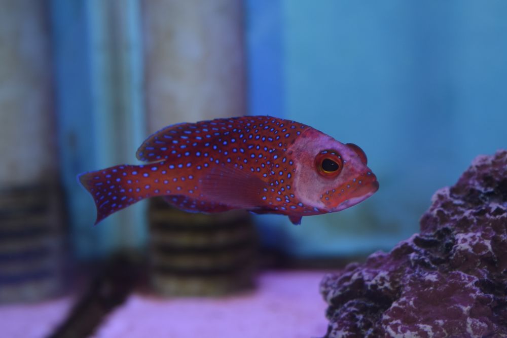 真っ赤な体色にブルーのスポットが細かく入るキレイなハタの仲間です!!