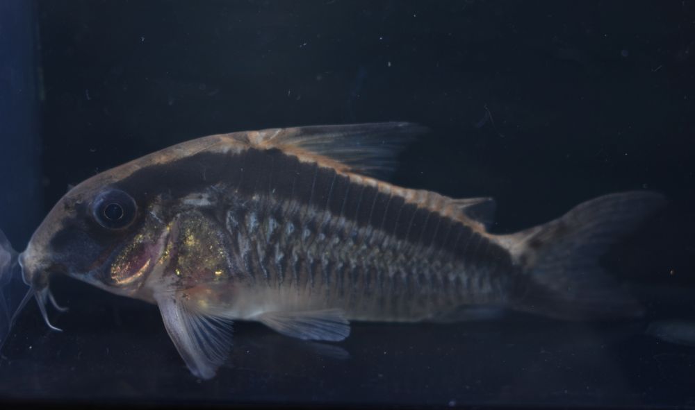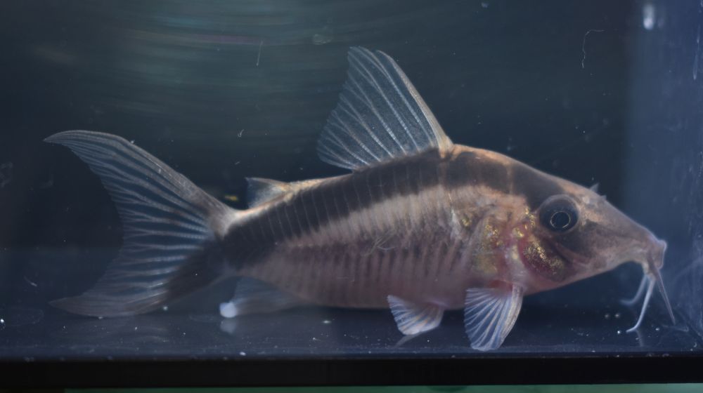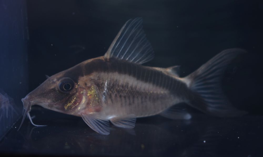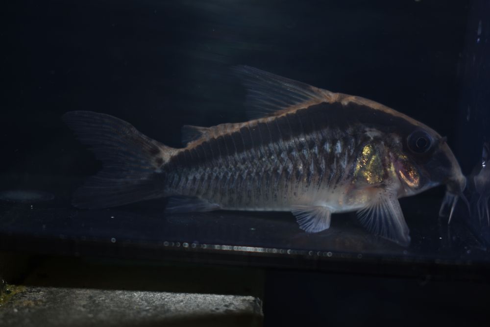 褐色の地肌に黒いアーチ状のバンドが入るコリドラスです!
