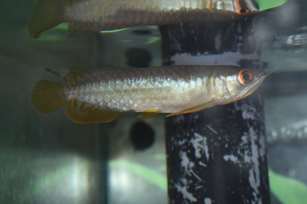 成長につれて鱗が尾の方から数えて、4段目くらいまで金色に染まる美しいアロワナです^^