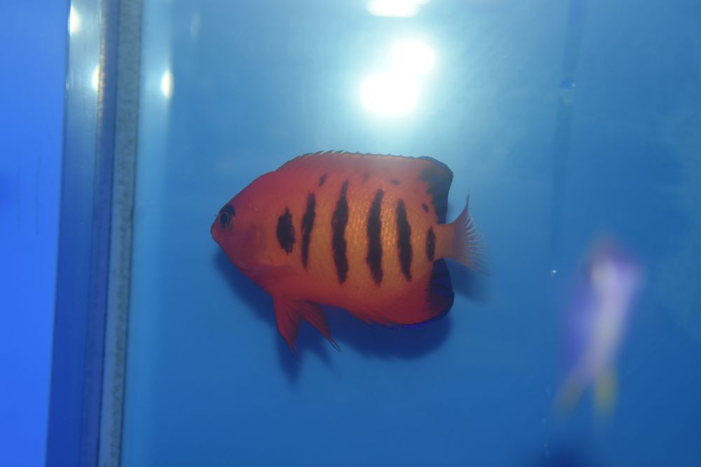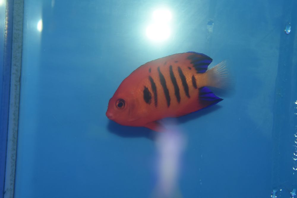 鮮やかな赤い体色と青い縁取りが特徴の小型ヤッコです^^