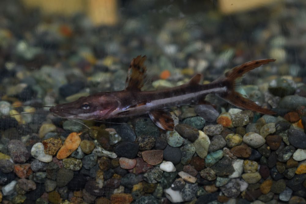 シャベルのように平たく長い顔とトラのような縞模様が特徴的なナマズです^^
