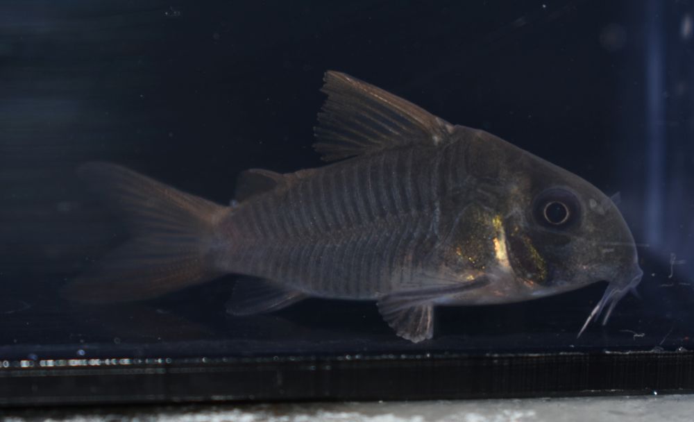 顔の方は暗緑褐色、尾ビレと背ビレの方はオレンジに染まる美しいコリドラスです!!