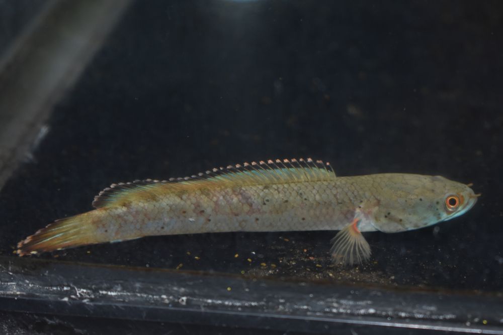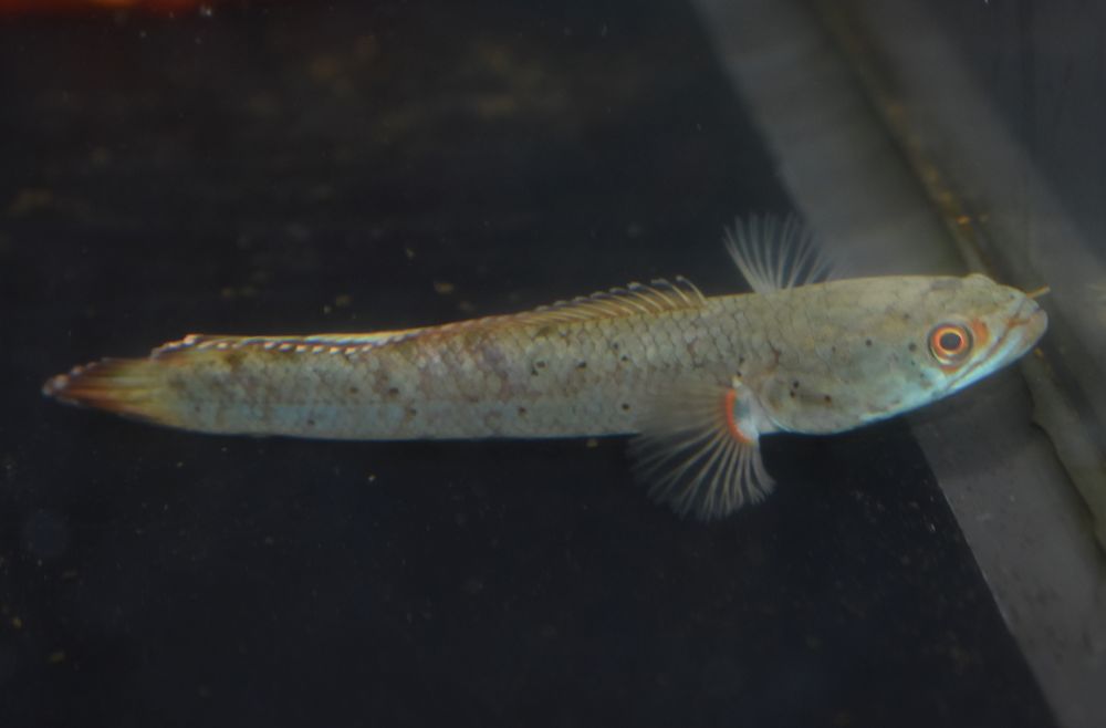 本種は体は青く黒いスポットが入る派手な色彩の小型スネークヘッドです^^