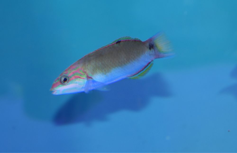 青や緑を基調とした極彩色の体色が美しい種で、浅いサンゴ礁の海域に生息しています!